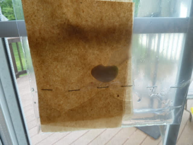 モモちゃんのソラマメ↓は、ジップロックに入れて窓に貼り付けて、根が出てくるのを観察する。一応観察カレンダーみたいのをもらってきたけど、提出義務はないそうなので、別にやってもやらなくてもいい見たい。