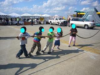 土曜日は、ダレス国際空港で行われた、飛行機引きのチャリティイベントに行った。フェデラル・エクスプレスのジャンボジェット機を、大人25人で引っ張り、どのチームが一番長い距離を引っ張られたかを競うもの。ほとんどが会社などの団体で参加している。我が家は飛行機引きには参加していないけど、このイベントに伴って他にもファミリー向けのイベントが盛りだくさんなので、うちはそっちが目的で行った。