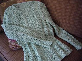 やっと完成。手編みのセーター。今は真夏なので、実際に着れるのはもうちょっと先だけど。編み図は、こちらのサイト(ウールマーク)から無料でダウンロードさせていただいた。