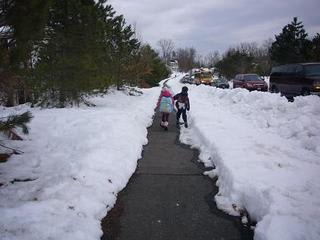 今日は、雪が降って以来11日ぶりに学校が再開した。学校の前の道路はまだ雪かきができてなくて、でこぼこ道になっている。学校の前の道路は優先的にやってもらいたいもんだわ。歩道はほとんど雪かきできているけれど、あちこちで雪の山に道をふさがれており、子どもたちはそこを登ったり降りたりしながら登校した。まるで、廃墟の町の中を歩いているようだった。写真は、帰り道。道路の渋滞は、学校へ子どもたちをお迎えに行く車の列。見渡す限りの車の列だった。すごいわ~。待っている間に家に歩いて帰れてしまうのでした。
