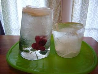 こんな日は氷の芸術を楽しみましょうってことで、昨日の夜、双子と一緒にコップに花を入れて外に放置してみた。ところが、花だったらきれいなのに、双子は「うどん入れる!針金入れる!マグネット入れる!」といって、ガラクタを水と一緒にごちゃごちゃコップに投入。今朝、見事に凍ってました。バラの花はきれいだけど、その他ごちゃごちゃいらないです。これを一日中外に放置していても、気温はずっと氷点下だったので、全く溶けず。去年も同じことやったら、1週間くらい溶けずに残っていた。今年はどれくらい残っているかな?腕があれば氷の彫刻とかも作れるのに。