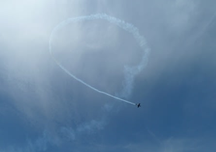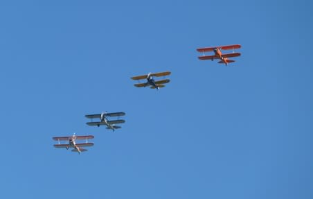 うちのすぐ近くにある、小さな空港で、週末に5キロマラソンと航空ショーが行われた。起伏が全くない平らな滑走路を走る。マラソンが好きなだんなが5キロマラソンに出場し、その後航空ショーを見た。テレビで見るような大々的なものではなかったけれど、アクロバット飛行やパラシュート降下、煙で空に字を書くというパフォーマンスなど。さん太は、私のカメラを奪って200枚以上の写真を撮った。