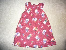 モモちゃんのドレスをもう一着作った。先日のと同じ型紙で、今度はちょっと気が早いけど、クリスマスの柄で。薄いペラペラの生地だから、本当は裏地もつけたほうがいいのだろうけれど、日本出発前でそんな悠長なことはしていられないので、ペラペラのまま。第一、こんなぎりぎりになってから裁縫を始めるほうが悪いんだけど。