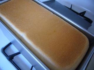 そして、昼間時間もできたことだし、明日以降のお弁当に持っていくサンドイッチ用食パンを焼いた。もちろん、日本で調達してきた角食パンの型を使って。一度休み中に作ってみたんだけど、焼き時間が足りなくてしぼんでしまった。今回は、焼き時間を10分延長してちょうど良かった。