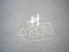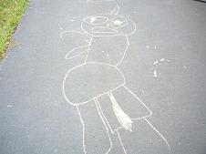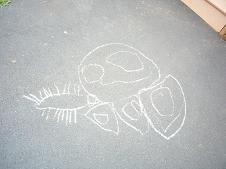 ナスカの地上絵ではありません。双子のチョークの落書き。なかなか興味深い絵だったので(と思うのは親のみ)、思わず写真を撮ってしまった。