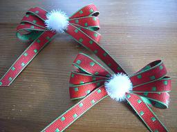 モモちゃんのリボンのヘアアクセ、クリスマスバージョンを作ってみた。