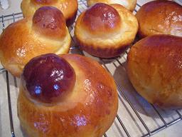 先日、パン作りサークルで作ったブリオッシュのおさらいを家でしてみた。やっぱりコブの部分がうまく出来ないなあ。ブリオッシュの型がなかったので、普通のマフィン型でやったのもいけなかったかも。ブリオッシュの型ってお店では見ないけど。少し遠くの専門店に行かないとだめかも。