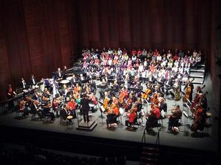 演奏する曲は全て、子どもたちがいつも親しんでいる童話をテーマにした曲で、それぞれの曲の前にお話を紹介したり、演奏をバックにお話の朗読があったり、近くの小学校のコーラスグループの合唱があったり、さらには子どもたちにおもちゃの笛が配られ、オーケストラと一緒に吹いてみたりと、とにかく子どもたちを飽きさせないプログラムで、双子も最後まで楽しむことができた。最後はみんながよく知っているジングルベルで締め。小さな子どもたちを音楽に触れさせるにはとてもいいプログラムだった。こんなコンサートなら、また行ってみたい。