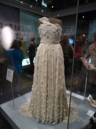 双子は2年生になってアメリカの歴史を学校で勉強したせいもあってか、アメリカの歴史博物館に行きたいと言うので、今回初めて行って見た。3階には大統領の間とファーストレディの間があって、大統領のほうはガラガラだったけど、ファーストレディのほうは行列ができ、入るのに10分くらいかかった。この差はいったい?考えてみれば、現実世界でも、どの大統領もボロクソに叩かれても、ファーストレディに対しては国民の皆さん好意的だもんね。ファーストレディの間では、歴代ファーストレディが実際に着用したドレスが展示されており、現ファースト・レディのミッシェル夫人が大統領就任式に着たドレスも展示されていた。モモちゃんが、靴のブランドをしっかりチェックしていた。