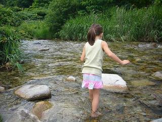 さん太が熱を出した土曜日、モモちゃんだけ連れて近くの川に遊びに行った。「水は清きふるさと」の歌のごとく、きれいな水だけど、流れが激しいのでこれまで川に入ったことはなかった。6歳になった今年は、そろそろ大丈夫だろうということで、入ってもいいことにした。