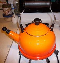 我が家2つ目のルクルーゼはやかん。クリスマス後のショッピングに出かけてみたら、安く売られていたのを見つけたので買ってしまった。半年ほど前にそれまで使っていたやかんを捨てて以来、うちにはやかんがなかった。沸騰ポットがあるので特に必要なかったけれど、お湯を沸かすにはガスのほうが経済的だし、やっぱりやかんはあったほうが便利だし。私は、やかんをガス台の上に置きっぱなしにしているので、見た目にもかわいいやつがほしかった。色は、すでに持っているルクルーゼのお鍋に合わせてオレンジ。