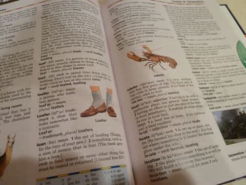 というわけで、早速購入することにした。そういえば、1ドルショップでも辞書って見たことがあったような気がするけれど、今回は双子が使うと言うことで、本屋さんで子どもの辞書を買うことにした。子どもの辞書でもハードカバーでやたら重い。だけどオールカラーで、写真やイラストがいっぱいで、なんだか楽しそう。これで成績アップお願いします。