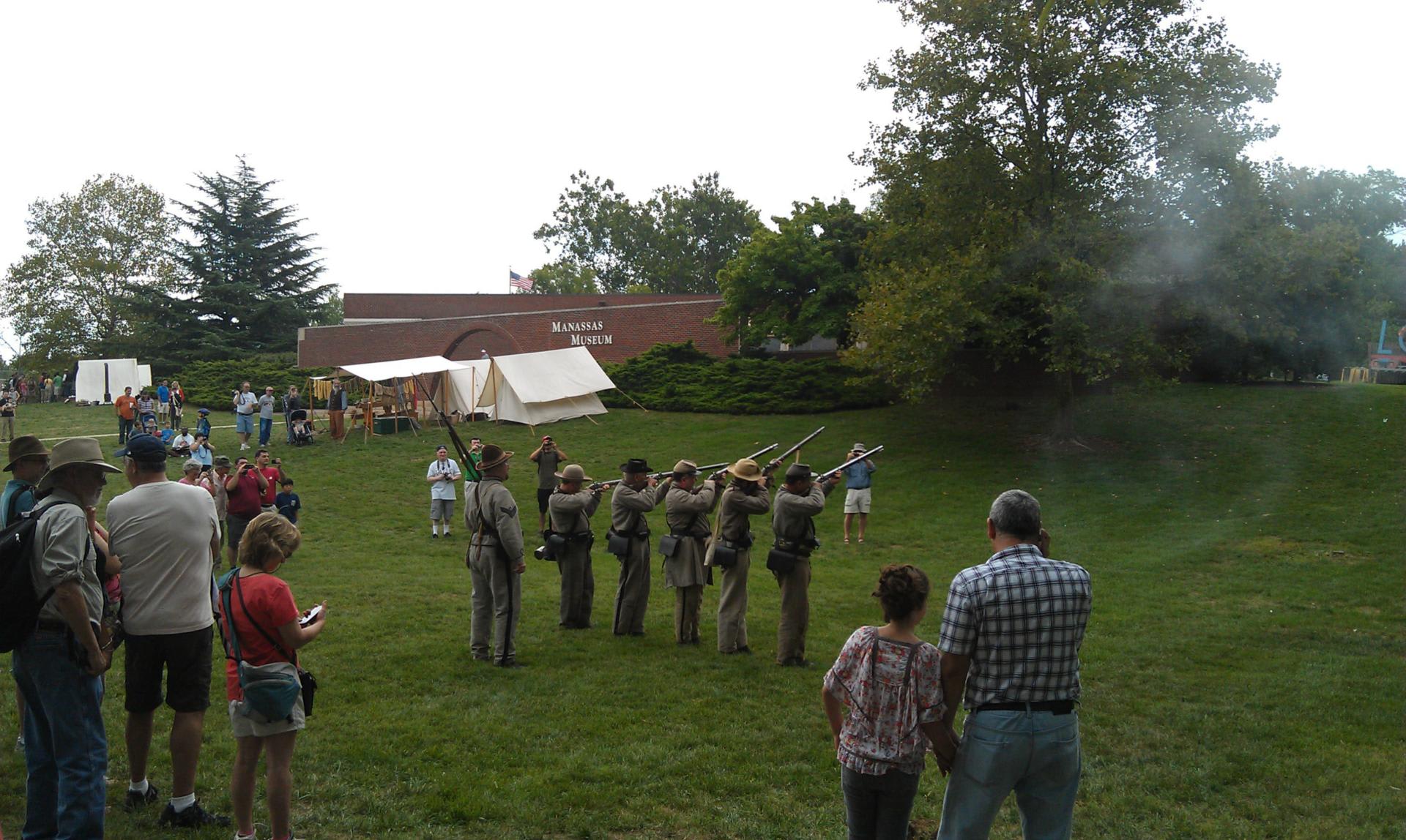 マナッサスの戦いでは、兵隊たちが戦うのを、一般人たちがまるでピクニックにでも行くかのように見物しに来て、逃げる兵隊たちの邪魔になったとか言うエピソードを「地球の歩き方」で読んだことがある。着ている服も豪華で、もうちょっと身軽な格好すれば動きやすかろうにと思った。何しろ、真夏の戦いだしね。こういうイベントを見るにつけ、アメリカ人って南北戦争好きだなあと思う。バージニアは、ちょうど北と南の境だし、ワシントンDCもすぐそばだし、戦場となった場所があちこちにある。
