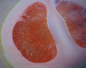 と、以前某掲示板に質問したら、「Pummeloという果物が、日本のはっさくに近い。ただし、当たりはずれが激しい」というありがたいお言葉をいただいた。早速お店で見てみると、Pummeloとは、グレープフルーツのお化けみたいなでかいかんきつ類だった。買って来て切ってみたら・・・、はずれだった。ぱさぱさして全然おいしくない。確かに、一つ一つの粒がしっかりして大きくて、はっさくのようではあったが。