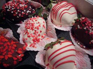 だんなからは、インターネットで注文したチョコレートがけ巨大イチゴ。チョコレートがけイチゴって私も大好きなのだけど、こんな風にきれいにデコレーションされて、ギフトボックスに入れられたものは初めて。アメリカのチョコにしてはおいしい~~~。