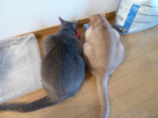おまけ:妹の家の猫2匹。今年は、双子に平和に接している。双子にえさをもらったせいかもしれない。