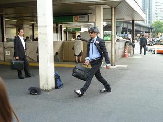 新橋の駅で見たパフォーマー。このままの格好でじっと動かずに立っていた。その向こうに、ホームレスのおっさんが寝ており、こちらもじっと動かず、手前のパフォーマーといい勝負だった。