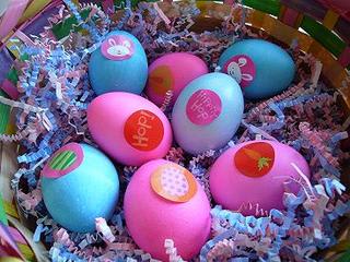 色つきゆで卵は、卵をゆでたお湯の中に酢を入れ、食紅(赤と青)をたらして、5分間卵をつけておくとできる。子どもの頃、実家の教会でイースターによく作ってくれた。写真の卵は、食紅を入れすぎてどぎつい色になってしまった。もっとほんのりした水色とピンクにしたかったんだけど・・・。