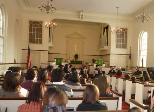 もう一週間前のことだけど、日曜日の午後、お友達のKさんの所属するボルティモア歌音(かのん)のコンサートがワシントンDCの教会で開かれたので、双子を連れて聴きに行った。Kさんの担当はフルート。子連れ歓迎と言うことだったので、うち以外にも子連れが多く来ていた。一応、双子はおやつで釣って、なるべくおとなしくさせて。