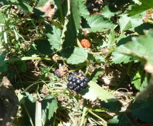 ブラックベリーも、実はついているけれどほとんどが赤くて、黒い実はほんの少しだけ、枝を持ち上げて下のほうを探さなければ見つからないくらいだった。でも、ブラックベリーおいしい~~~。うちの裏庭に勝手に生えているのと同じ種類のブラックラズベリー(ブラックベリーと比べるとかなり小ぶり)もあって、こちらは結構たくさんとれた。うちの裏庭のはまだ全然赤いけど、ここのはかなり熟している。それに、ちゃんと育てているためか、熟した実は甘い。うちのは勝手に生えているだけなのですっぱい。ジャムなどにしないと食べられない。