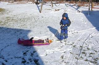 仕方ないので、双子だけで裏庭で遊んだ。引っ張るのはいつもさん太の役目。