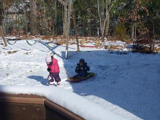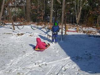 今日は気温が上がったので、雪は半分くらい溶けた。学校が休みで大張り切りの双子は、早速朝から隣の家のお友達と遊ぼうとドアを叩いたら、お勉強中で遊べませんだって。隣の家はホームスクールなので、Snow Dayは関係ないのだ。雪が降ろうが槍が降ろうがいつも通り授業は行われる。