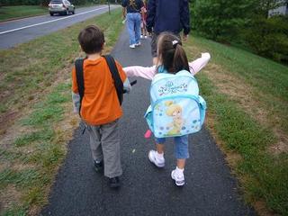 だんなも、その日は自宅出勤にして、学校まで一緒に歩いて送っていった。学校までは徒歩10分。アメリカの子どもたち(とりわけキンダー)は、親がしっかり送り迎えしないといけない。バスに乗る子達は、バス停まで、うちみたいに家が近い場合は歩いて学校に行き、先生に引き渡し、帰りも親がちゃんとサインをしないと返してくれない。または、車で送り迎えの場合は、学校の入り口まで車をつけ、そこで待っている先生たちに直接引き渡す。朝、学校の前にはいつも長い車の行列ができている。