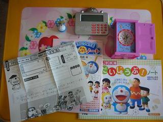 どちらの通信教育も、入学祝いの特典が色々とついてくる。ドラゼミの特典が昨日届いた。ドラえもんの目覚まし時計と計算機、握って持つと鉛筆が正しく持てるというドラえもんのボール、入学準備ワーク、それにお試し添削問題。