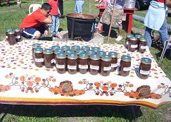 りんご園では、屋外でアップルバター作りのデモンストレーションを行っており、子どもたちもりんごを切ったり大なべをかき混ぜたりして、参加していた。うちの二人はまだ小さいので、見ているだけだったけど。大なべから立ち上がる煙が香ばしくって、しばらく眺めていた。