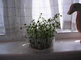 忘れてたけど、先日育てたかいわれ大根は一応成功。ということで、記念に写真撮影。1週間でできてとても便利。