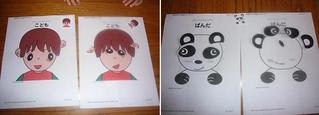 で、こちらの写真は、上記のサイトからプリントした福笑い遊び。といっても、目隠しはせずに普通に糊で貼らせて見た。ふたりとも楽しんで遊んでいた。