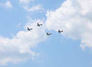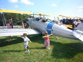 昨日の日曜日午後、とても良いお天気の中、友人のM一家と、航空ショーを見に行った。飛行機は、第1次世界大戦時に使われていたような、古いタイプのプロペラ機。これが10台くらいで、アクロバット飛行を見せてくれた。飛行機大好きのさん太と、お友達のF君は、大喜び。モモちゃんも、結構楽しんでいた。