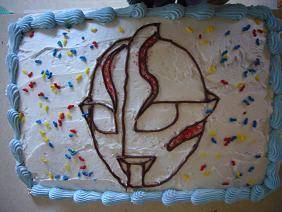 今年のケーキも、本人たちのリクエストにより、モモちゃんがきらりんレボリューションのきらりちゃん(全然似てないけど。しかもずれてるし・・・)、さん太は去年と同じ、ウルトラマンメビウス。