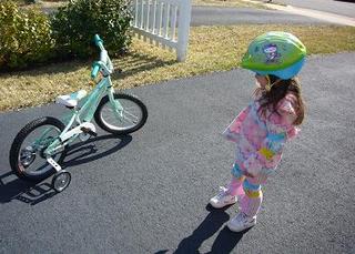 二人は、お誕生日プレゼントに自転車をもらった。けれど、三輪車もろくに乗れない二人。ちょうどお天気がよかったので、早速外で乗ってみたけれど、モモちゃんは5分でリタイア。さん太もその5分後にはヘルメットを脱いで家に入ってしまった。しばらくしてから再挑戦したら、モモちゃんはようやくペダルを動かすことをマスターした。あともうちょっと。